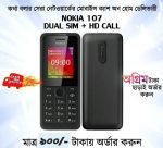 নোকিয়া ১০৭ দুই সিমের মোবাইল এবং এতে মেমোরী কার্ড ব্যবহার করা যায়। দেখতে সাধারন এবং অফিশিয়াল লুকস যে কাউকে মুগ্ধ করবে, স্মার্ট ও সিম্পল ডিজাইন এই মোবাইল এর।